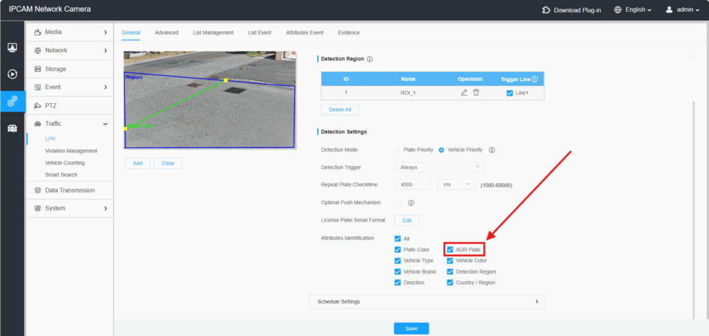 C’est le cas de notre caméra IPC-B536-5-12X-LPR3, dotée de la fonction ADR.