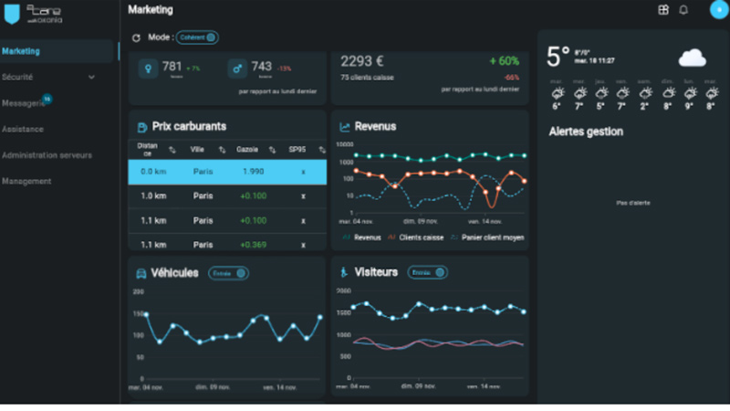 Développé en interne notre système de Dashboard peut être modulé en fonction de votre besoin, afin de réaliser un comptage mono ou multi sites, tout en permettant une recherche multicritères. Il s’agit d’une solution idéale par exemple sur des chaînes de station services.