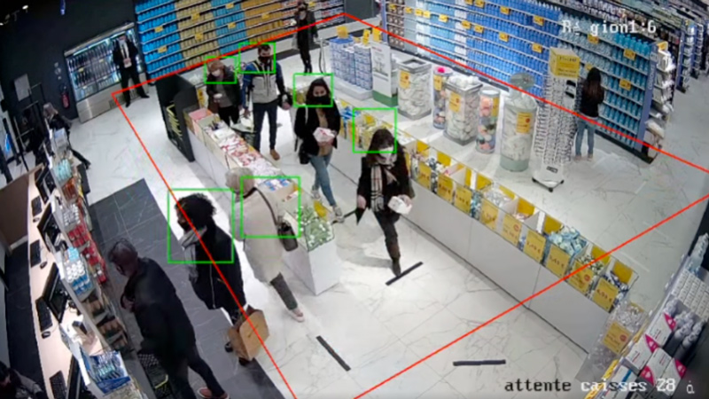 Vous pourrez mobiliser vos employés au bon endroit en détectant le temps d’attente de vos clients en caisse grâce à un algorithme puissant comparant le nombre de d’humains dans une zone donnée et leur temps de présence. Cette fonction est testée avec succès sur différents emplacements : avant des caisses, ligne arrière ou encore secteur traditionnel (traiteur, boucherie…).