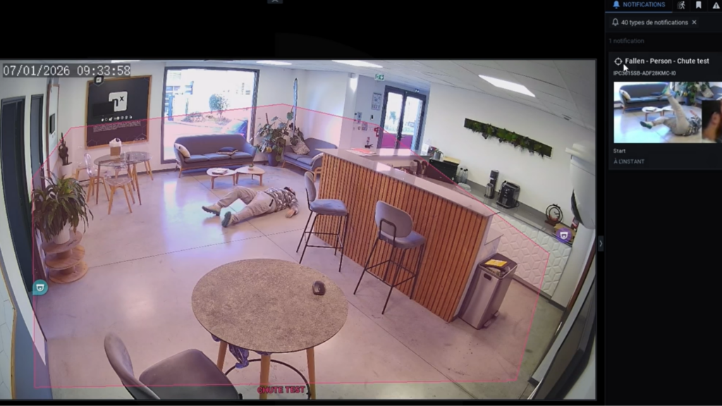 En activant cette IA vous serez en mesure de détecter toute chute de personne dans le champ de la caméra, ce système fonctionne parfaitement bien, et ce même en conservant votre caméra existante. Une solution plébiscité pour améliorer la sécurité de vos clients Et de vos employés.