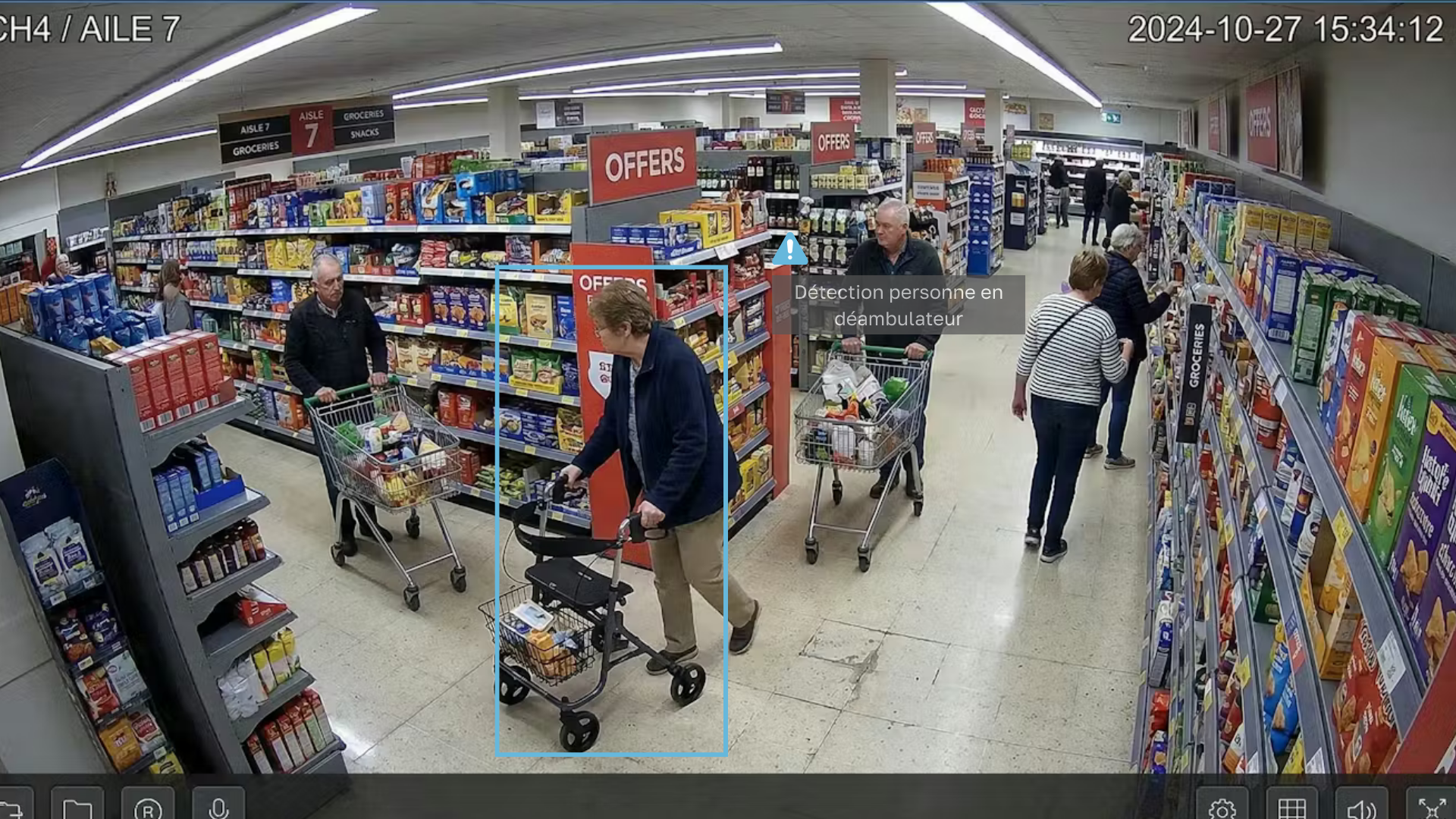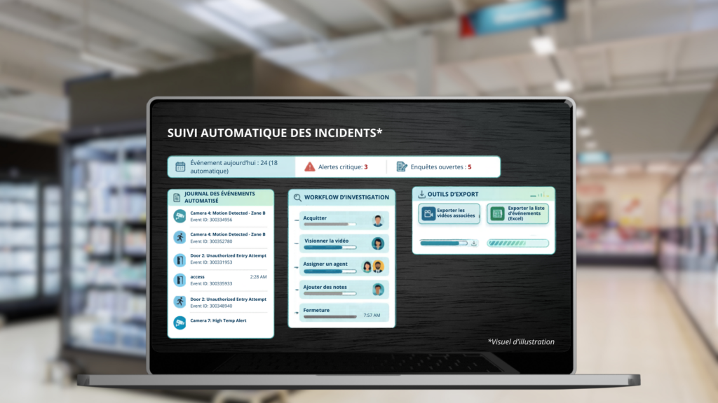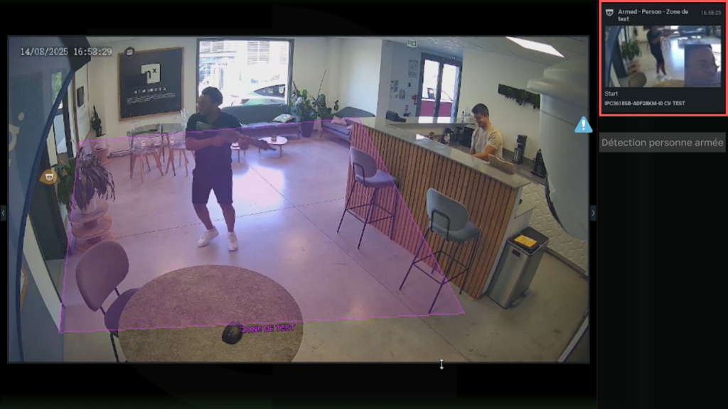 Selon votre projet nous pouvons remplacer ou réutiliser vos caméras en place, et détecter par exemple des objets sortant par l’entrée afin de vous prévenir de ce type de comportement suspects, ce système fonctionne sur des humains (en inhibant les caddies).