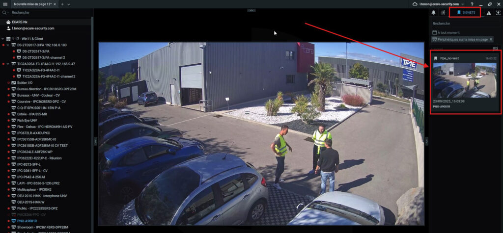 Exemple de détection automatisée du non-port des EPI dans Nx Witness avec enregistrement d’un signet :